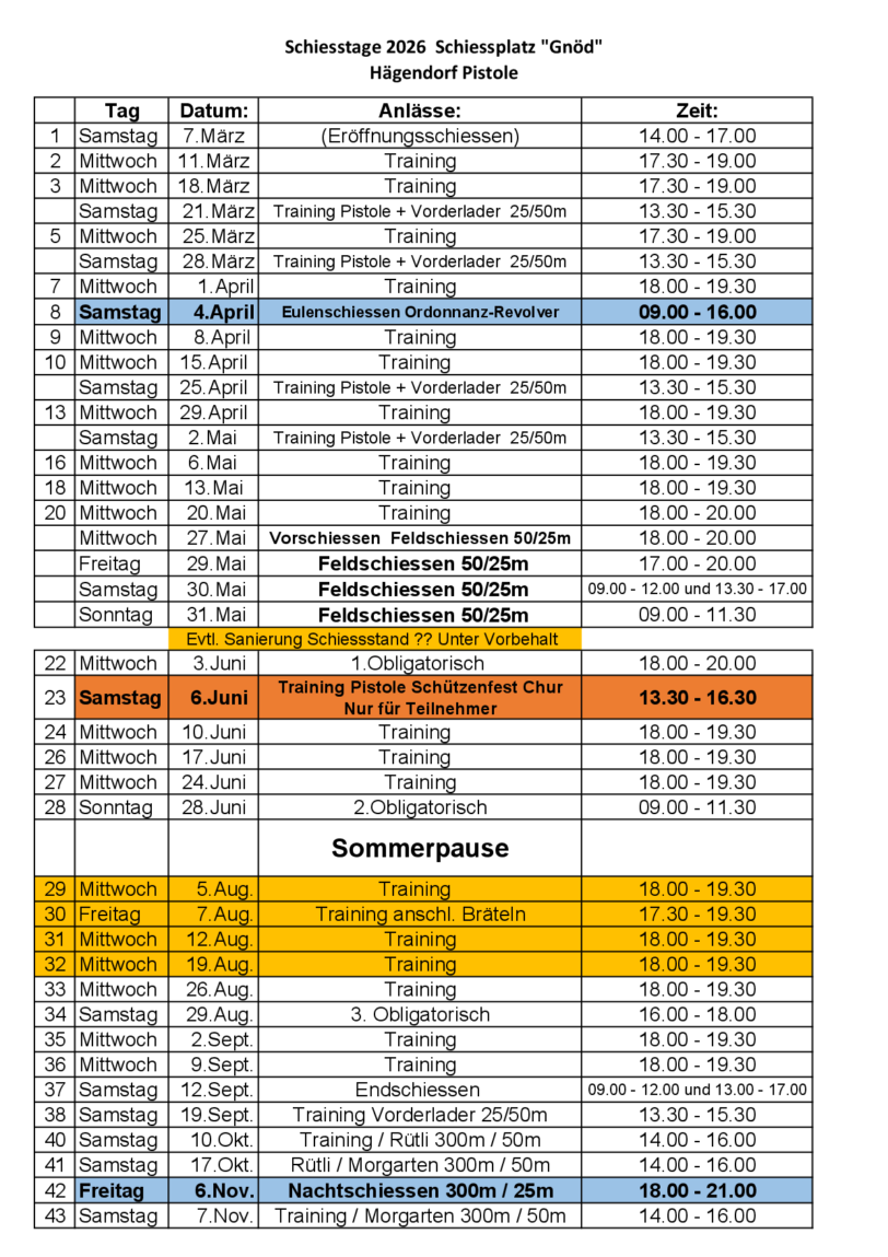 Am 6. April 2013 fand dann das erste offizielle Eulenschiessen Hägendorf statt.